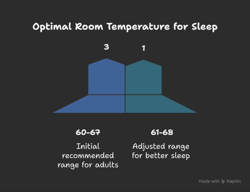 The cold vs warm question guides you toward the temperature range that works best for most adults. Once you know that cooler conditions support better sleep, the recommended range makes sense: 60–67°F (15–19°C).